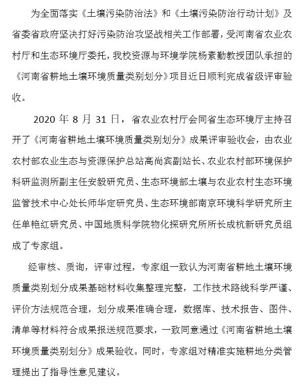 哔咔漫画杨素勤教授团队承担的《河南省耕地土壤环境质量类别划分》项目通过省级成果评审验收