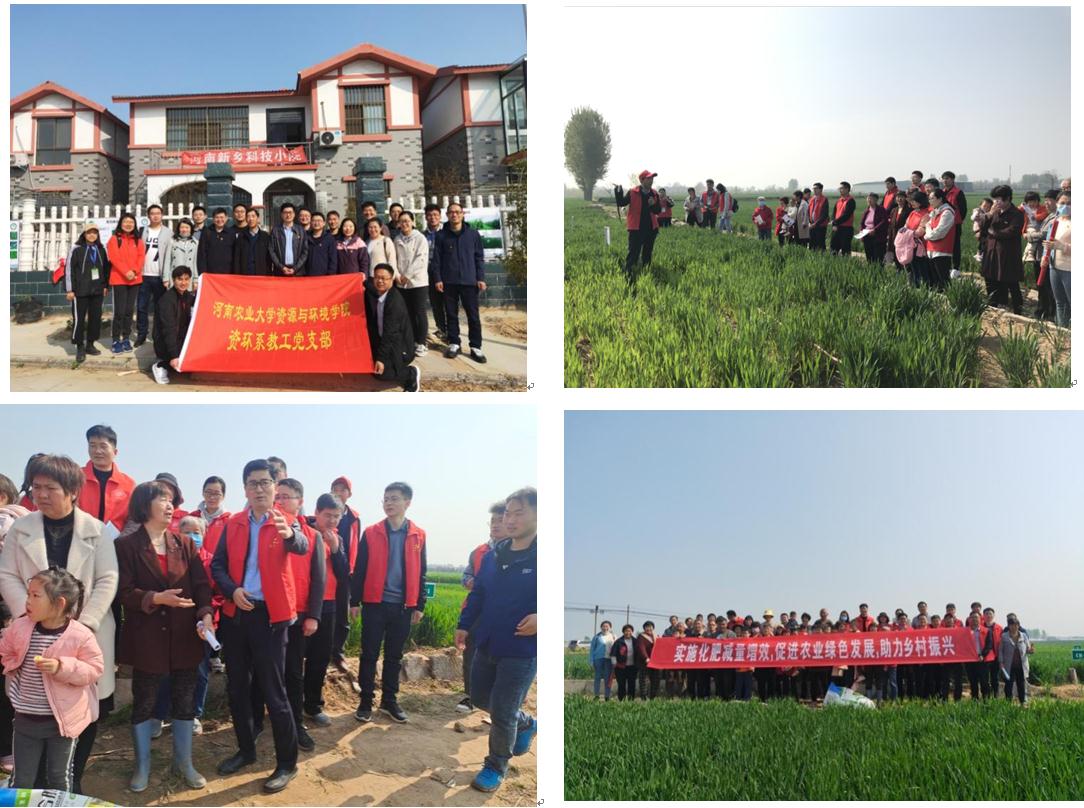 上午,教工党员首先来到哔咔漫画 新乡科技小院,与驻院研究生和帮扶农户进行沟通座谈,了解研究生学习生活状况及所开展科技助农活动,帮扶解决农户目前作物种植遇到的问题和困难。在小院驻地,支部书记刘红恩教授对周边农户小麦、大蒜和蔬菜种植中遇到的施肥技术和土壤障碍等问题进行了现场答疑解惑。在小麦田间现场,叶优良教授对当地种植大户进行了小麦绿色科学施肥和“一喷三防”技术培训。幽默的语言和通俗易懂的讲解赢得了大家的阵阵掌声。“爱农大”、“新型农民”、“减肥增效”、“粮食高产”是培训现场农户不时大声高喊的词语。