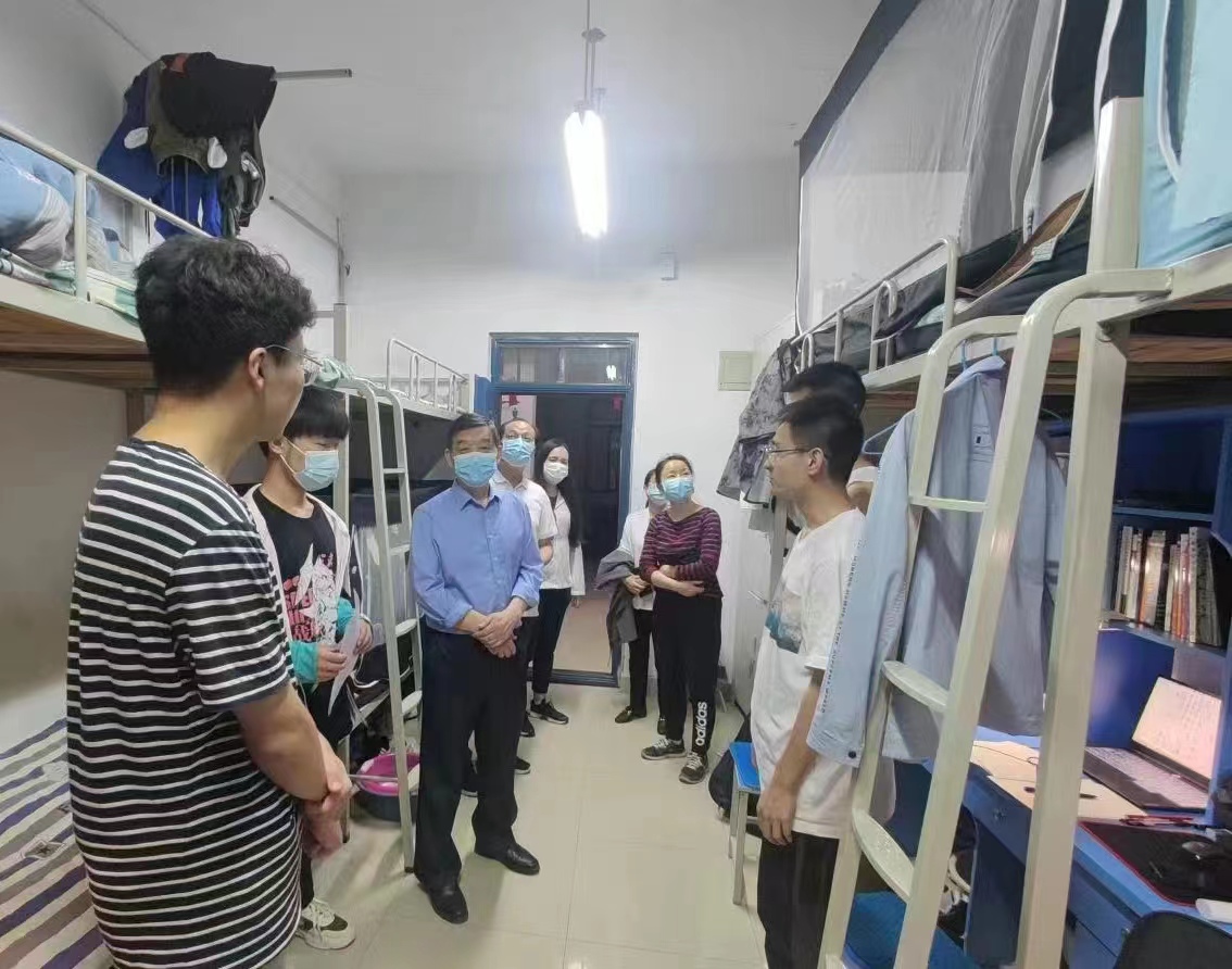 此外,院长赵鹏、院党委副书记陈景红、副院长杨璟、刘世亮、李玲及团委辅导员一行深入学生宿舍,与学生进行亲切交谈,仔细询问学生的网课学习情况,认真查看宿舍的卫生环境,切实了解学生的日常生活条件,关注学生的心理状况和思想动态。在切实了解学生日常生活学习的基础上,叮嘱学生要严格遵守各项管理规定、积极配合学校疫情防控工作,并鼓励大家保持乐观心态、坚定必胜的决心和信念,与老师一同筑牢校园疫情防线。