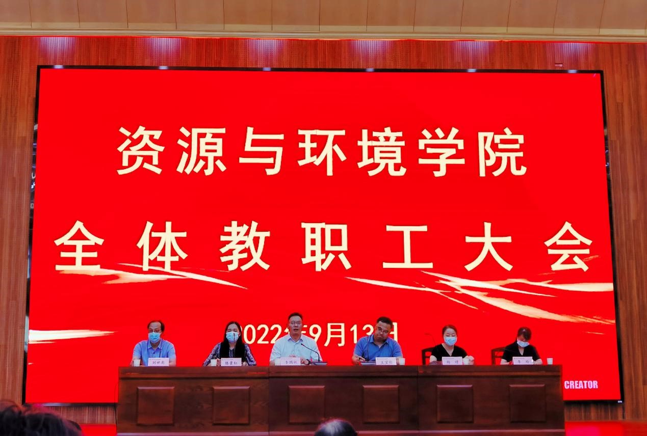 2022年9月13日下午,哔咔漫画 在龙子湖校区图书馆报告厅召开全体教职工大会,对新学期学院工作进行安排部署,并提出具体要求。院长王宜伦主持会议。