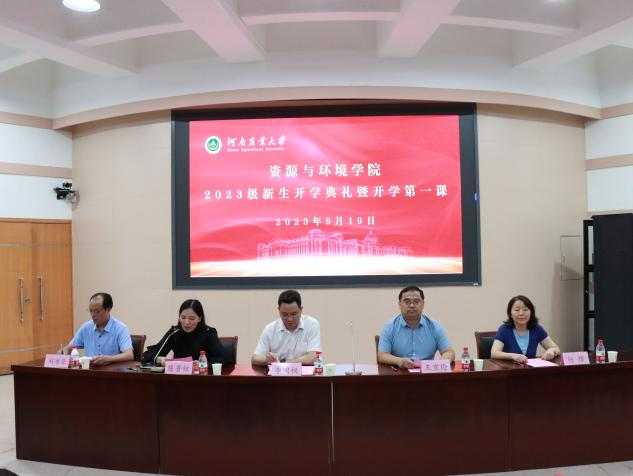 2023级新生开学典礼暨开学第一课在文化路校区隆重举行。学院党委书记李国权、院长王宜伦、党委副书记陈景红、副院长杨璟、副院长刘世亮、植物营养系系主任李慧、土壤环境系系主任马双龙、院团委书记王岚、院党政办副主任盛开、新生班主任出席典礼。典礼由陈景红主持。