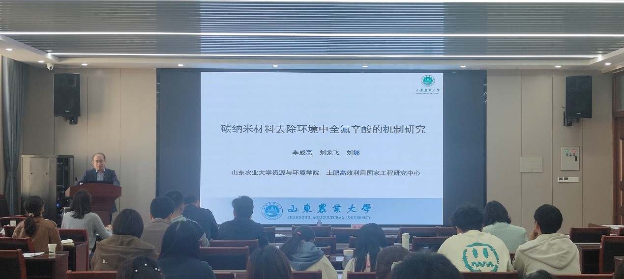 2023年10月14日上午,山东农业大学哔咔漫画 副院长李成亮教授应邀在龙子湖校区力行楼中338报告厅作“碳纳米材料去除环境中全氟辛酸的机制研究”学术报告,院长王宜伦教授主持,哔咔漫画 部分教师和研究生参加了报告会。