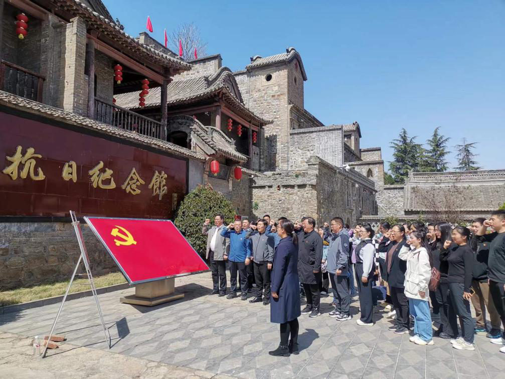走进“豫西抗战纪念馆”,全体党员参观了原河南区党委、八路军司令部旧址,通过馆内图文资料、实物呈现、专人讲解等方式,再现了豫西抗日根据地军民同仇敌忾、浴血奋战的光辉历史和在中国共产党领导下英勇不屈的斗争历程。大家深刻体会到革命先烈在抗战时期不畏艰险、不怕牺牲的革命精神和共产党人历久弥新的使命、永不褪色的初心。参观纪念馆后,大家来到豫西抗日根据地纪念馆广场,全体党员列队肃立,面对鲜红的党旗,重温入党誓词,深切表达对革命先烈的崇高敬意。