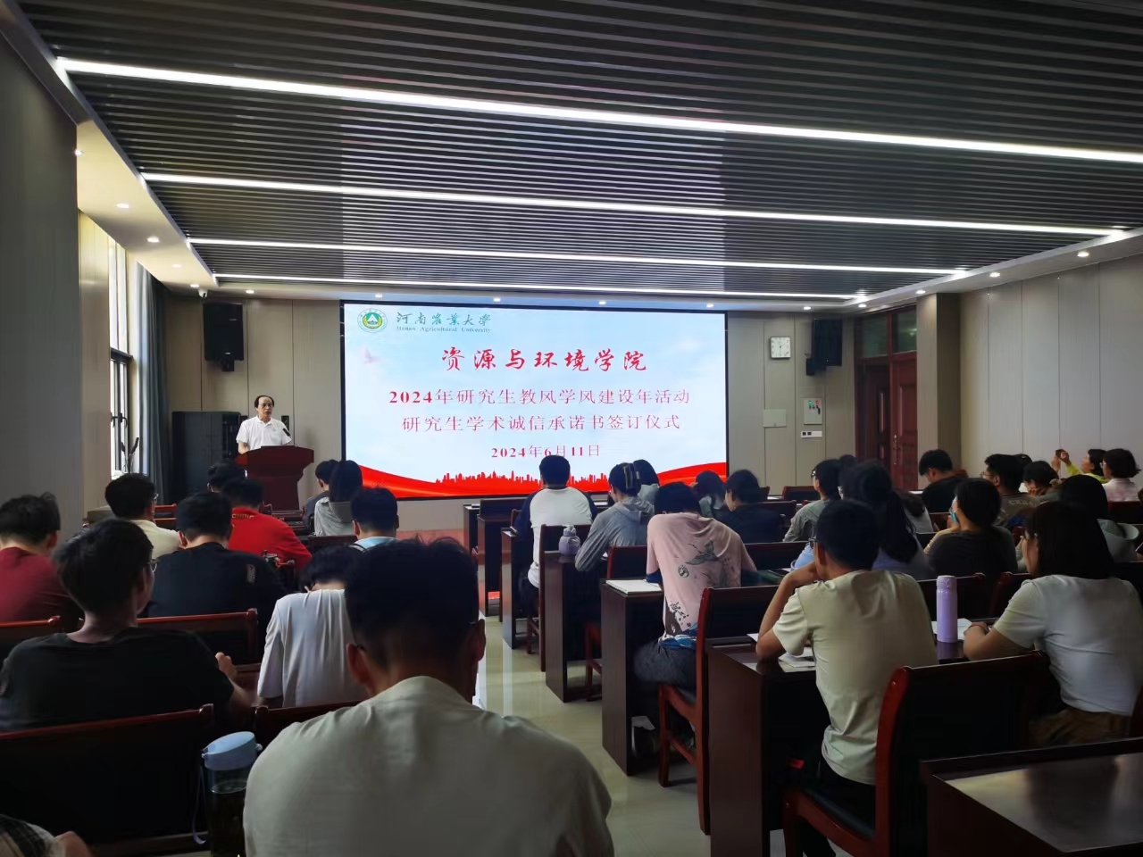 为深入加强研究生学术诚信教育和学术规范指导,进一步提高学生诚信意识,持续营造良好学术氛围,2024年6月11日,哔咔漫画 举行研究生学术诚信承诺书签字仪式。副院长刘世亮出席仪式,哔咔漫画 全体研究生参加。