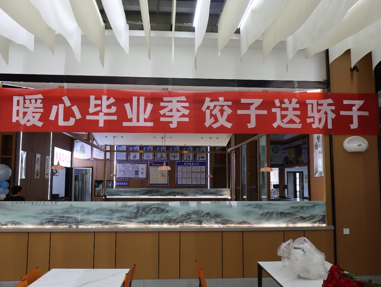 还精心准备了“饺子送骄子”活动,并为当天生日的同学进行庆生,全场师生共唱生日快乐歌,气氛欢快热烈。