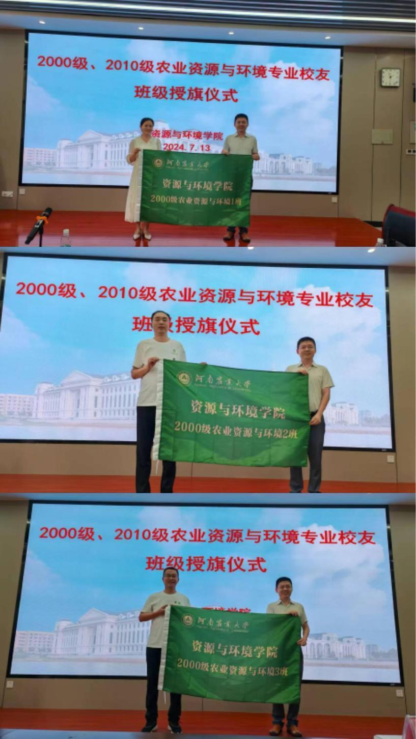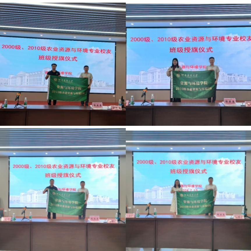 将搭建校友交流合作平台,共同为母校中国特色世界一流农业大学创建贡献力量。闫东代表学校向2000级农业资源与环境1-3班和2010级农业资源与环境1-4班授班级旗帜和校友徽章,希望校友不忘班级的荣誉、责任和使命,保持不断前进的动力,继续发扬专业的优良传统,在各自的工作岗位上,为社会贡献更多的力量。
