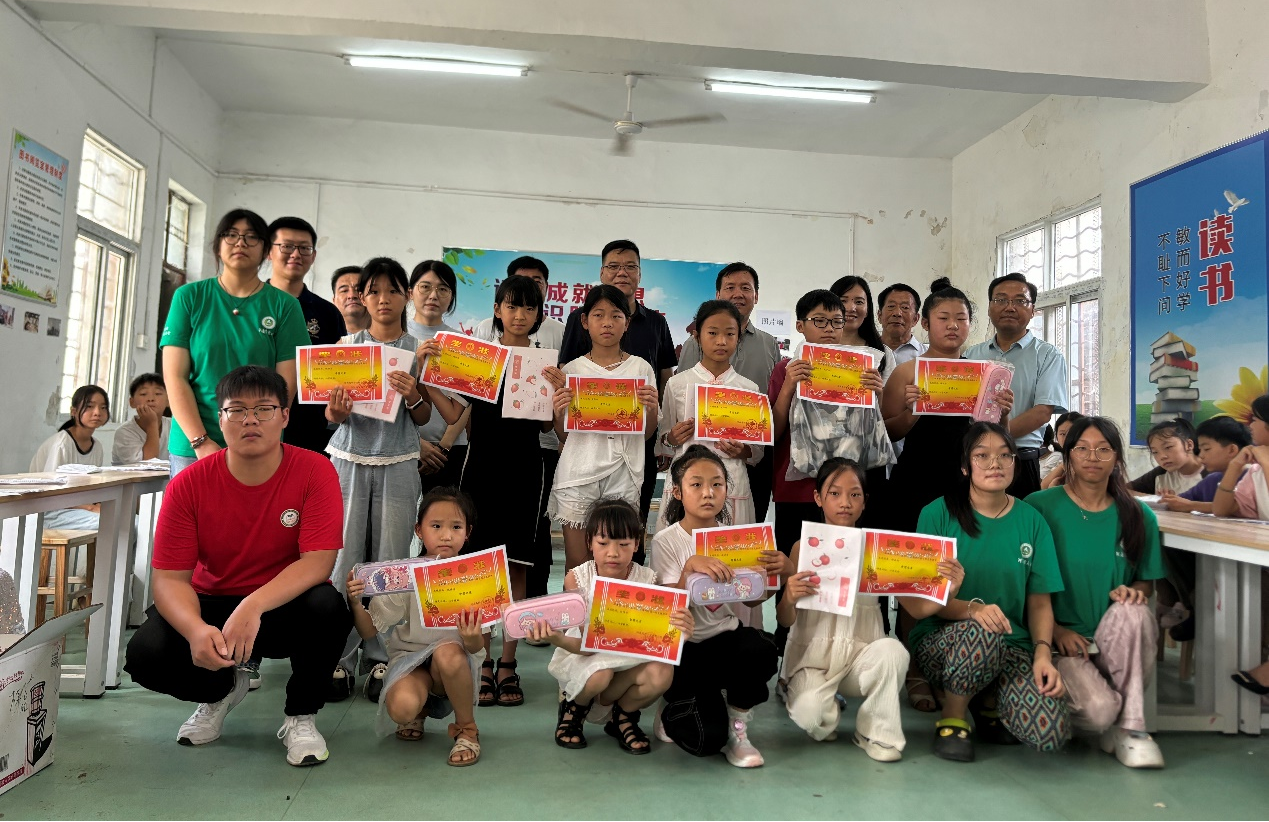 弘农支教队结合一个多月的综合表现评选出“未来之星”、“智慧之星”、“希望之星”共10人,李兴道、陈豪亮、陈景红、李文涛、张朝晖、王岚依次对获奖学生进行了颁奖。同时,对于所有参与并完成本次支教班学习的全体学生,支教老师们也为大家发放了结业证书和小奖品。