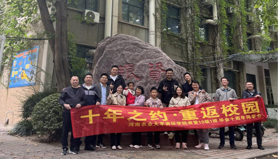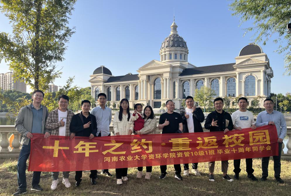 在文化路校区,校友们在班主任张亚丽老师的陪伴下重游熟悉的校园,回忆四年美好的大学生活,在工程楼前签到,在图书馆、操场、食堂、18号楼前和樱花大道等地拍照留念,进入3号教学楼的教室里点名并举行了一次重聚的班会……十年光阴恍若一日,曾经求知若渴的学子们迎着光走出校园,如今又带着光重回母校,个个稳重、成熟又不失纯真和初心。在龙子湖校区,校友们对雄伟壮观的校舍和美不胜收的校园赞叹不已,切实感受到了母校在这十年间日新月异的发展与变化。随后,大家在哔咔漫画