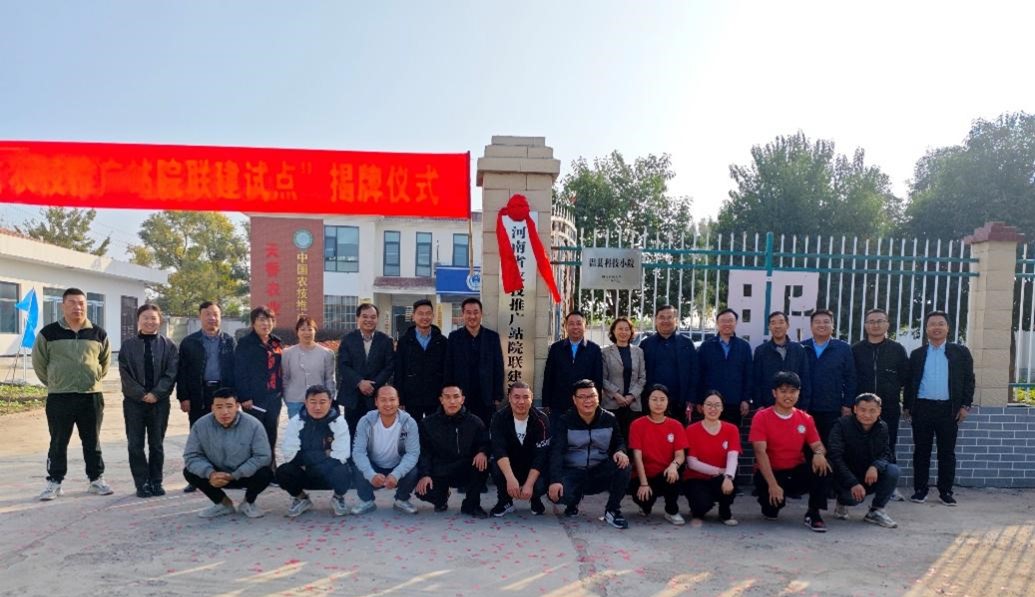 张广建一行考察了温县北冷农业技术推广站(温县铁棍山药科技小院),听取李岚涛汇报温县“基层站院联建”试点基地及科技小院基本情况,对哔咔漫画 与温县农业局、天香农业科技有限公司在人才培养、农业科技研发和推广服务等方面多年合作取得的成效表示赞赏。张广建、赵翠萍、安志超、桑卫江共同为“河南省农技推广站院联建试点”揭牌。