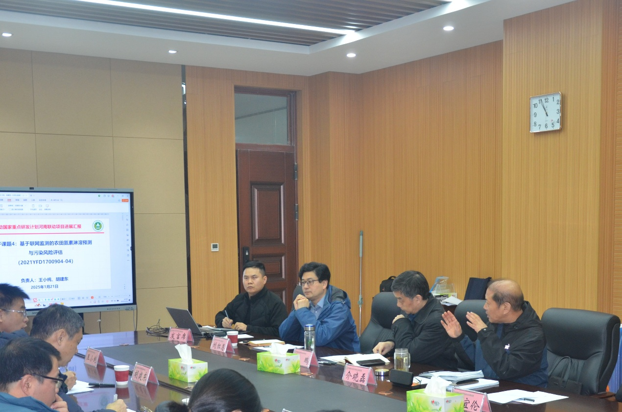 各子课题负责人分别围绕养殖区氨挥发与氮素淋溶污染过程与调控机制、种植区和种养结合区氨挥发与氮素淋溶污染过程与调控机制、山前平原-漫坡地-潮土区农田地下水氮素溯源与调控机制、联网监测农田氨排放、氮淋溶与污染风险评估、基于作物安全生产的土壤氮素累积消减与气液相损失阻控机制、基于土壤-作物系统氮素循环高效利用的模型构建与应用、种养结合区畜禽粪便和秸秆高值化循环利用理论、技术与产品研发,从子课题考核指标完成情况;自项目启动以来的执行情况;自项目启动以来取得的主要进展和成果;存在的主要问题;下一步工作打算等进行了详细汇报。介晓磊教授、赵鹏教授、胡克林教授等专家对各子课题进行详细点评。项目负责人介晓磊教授对各子课题的进展情况予以了充分肯定,并针对各子课题执行过程中存在的问题给予了相关的指导和建议。项目组秘书刘红恩教授对课题成果凝练及阶段成果汇总中的注意事项进行了梳理,并做出说明。