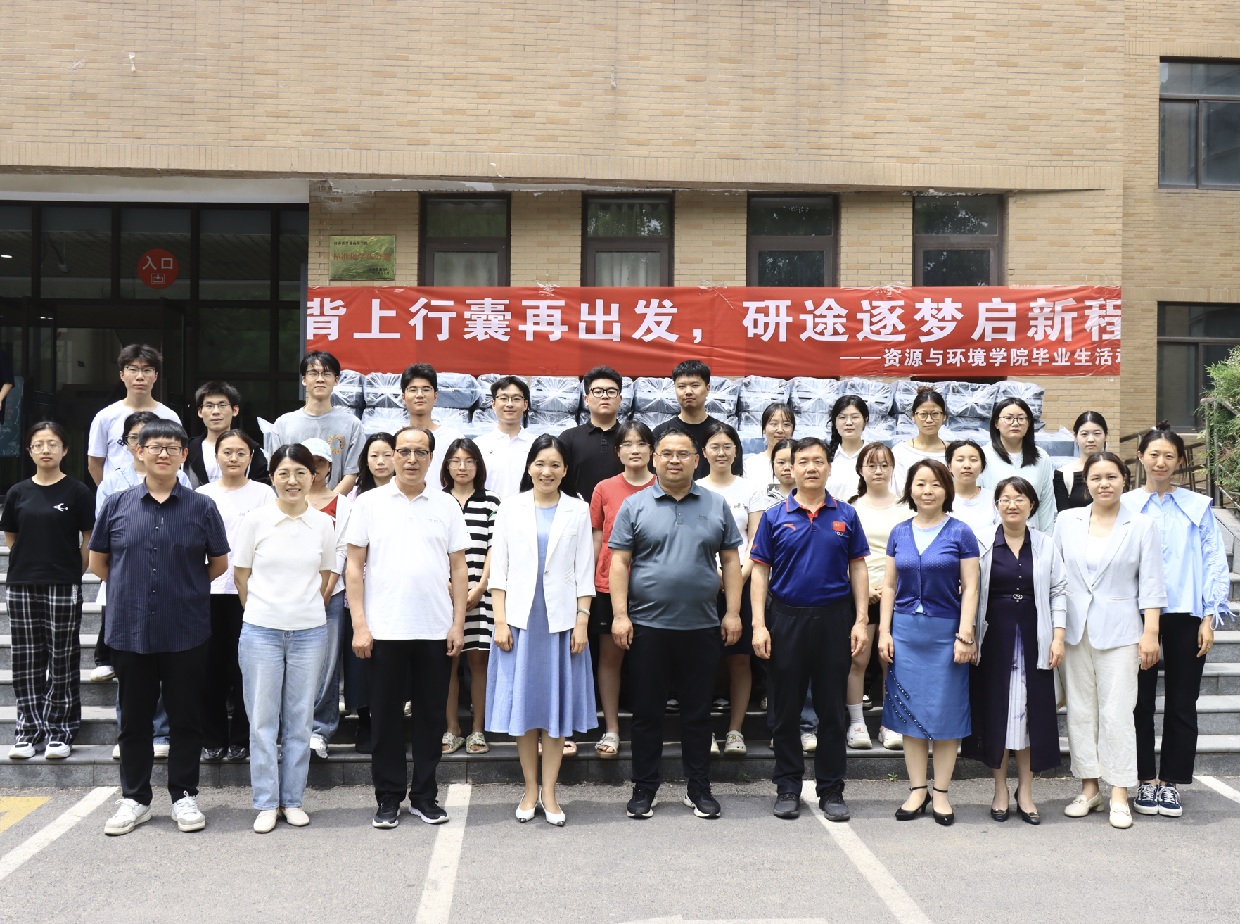老师对成功考取研究生的毕业生们表示衷心祝贺,关心了解大家的毕业答辩、未来学习规划、离校前需求等情况,同时鼓励大家在研究生期间再接再励、勇攀高峰,争取在专业学习与研究中有所突破,进而为乡村振兴事业贡献青春力量!最后,老师们将一个个承载着期望和祝福的行李箱送到学生手中,嘱托大家逐梦新征程,扬帆再起航!
