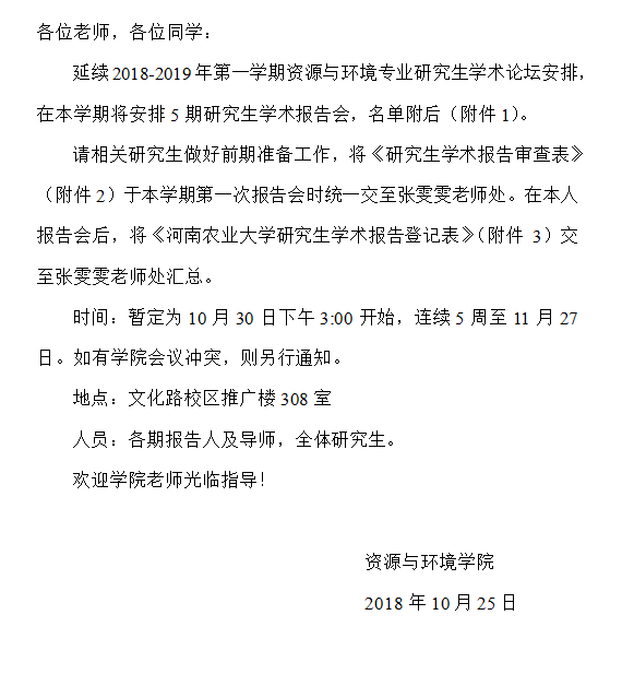 附件3:河南农大学术报告登记表