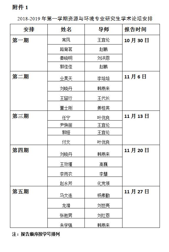 2018~2019学年第一期资源与环境专业研究生学术论坛安排