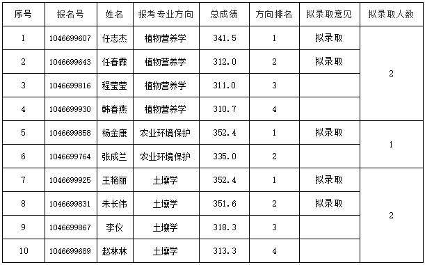 按照《哔咔漫画 2021年博士研究生招生申请考核制实施细则》的要求,经哔咔漫画 研究生招生工作小组审核,现将2021年博士研究生复试成绩公示。哔咔漫画 拟录取5人,其中植物营养学方向2人,农业环境保护方向1人,土壤学方向2人。公示期:2021年4月28日——2021年5月9日。如有异议,请与哔咔漫画研究生招生办公室联系。