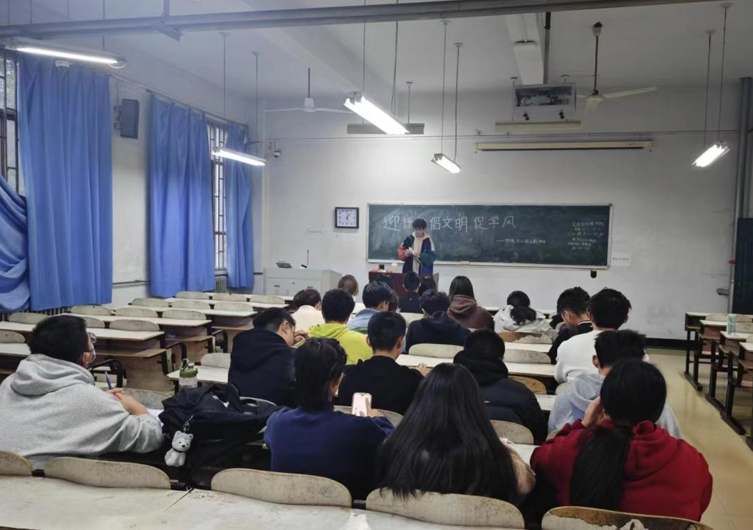 期间,各班同学首先认真学习了《本科教育教学审核评估应知应会手册(学生版)》,对评估工作的相关纪律要求有了初步认识,并意识到教育评估与学校和个人发展密切相关。接着,各班通过小组讨论、知识问答等方式,就如何加强班级文明建设与学风建设展开激烈讨论。同学们踊跃发言,并在个人言行举止、课堂纪律、宿舍卫生等方面提出高标准、严要求。