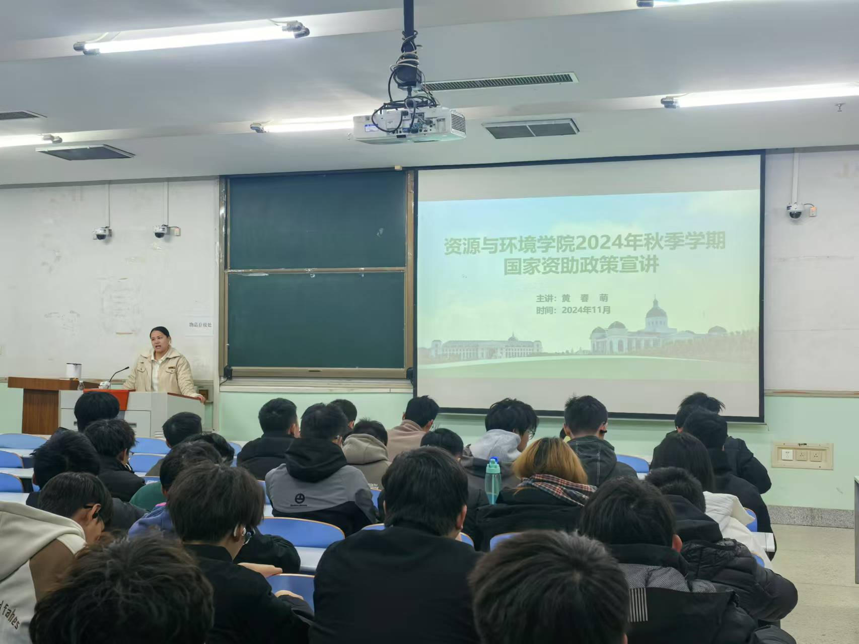 于11月26日在文化路校区工程楼举行2024年秋季学期国家资助政策宣讲会。宣讲会由院团委副书记黄春萌主讲,全体2024级学生参加。