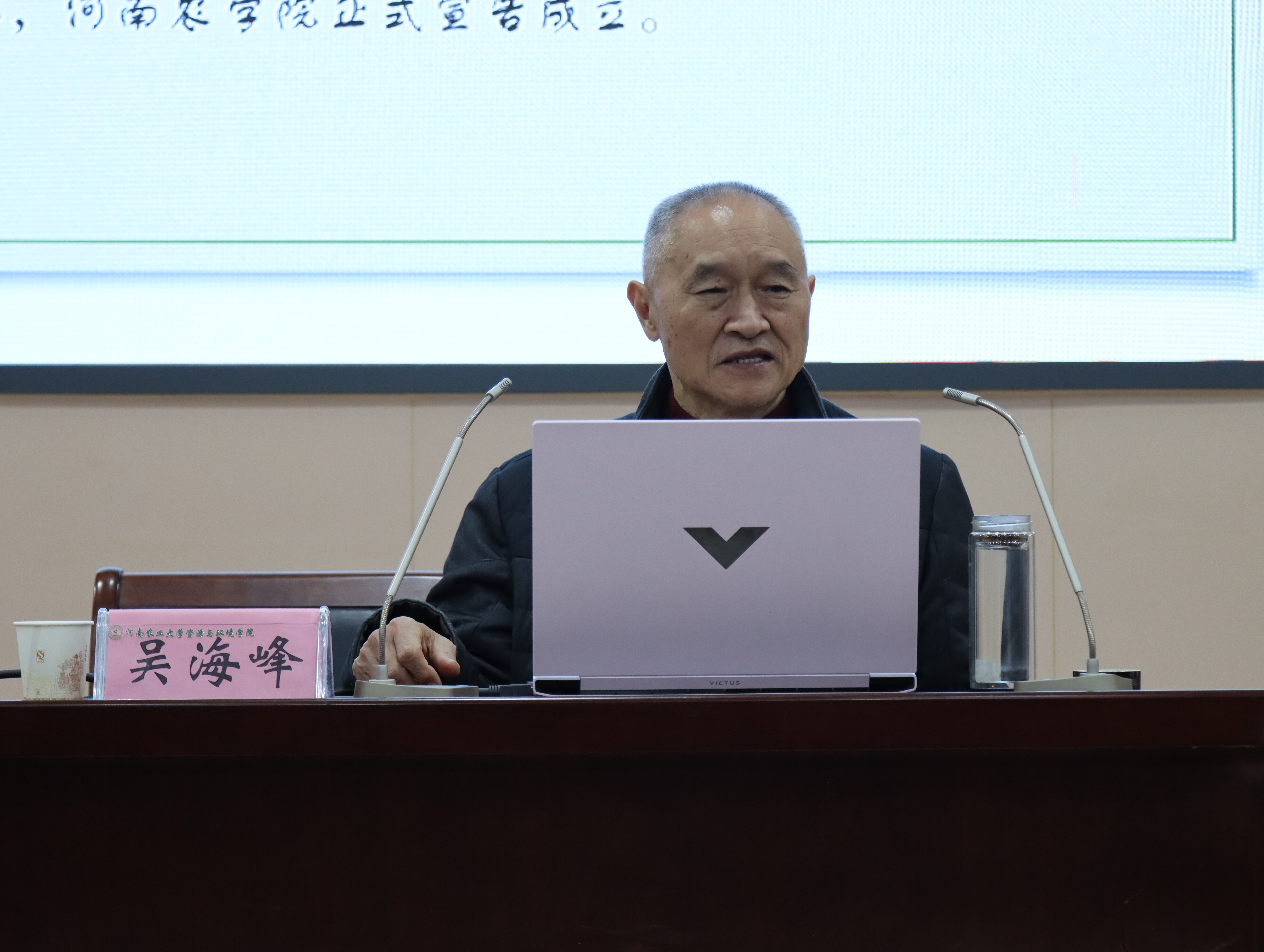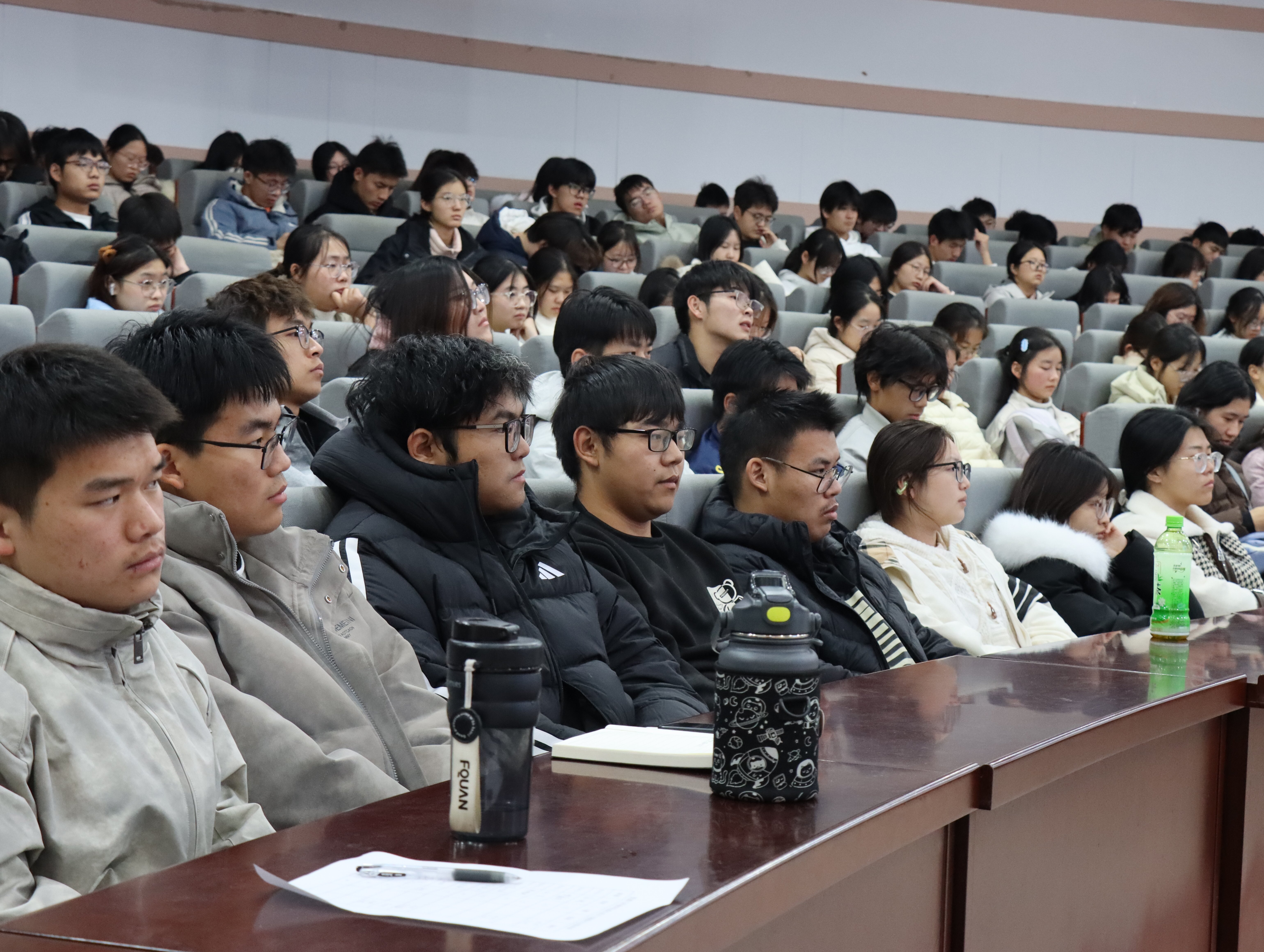 于文化路校区300人报告厅举行新生成长成才报告会。本次报告由原图书馆馆长、正高级研究馆员吴海峰老师主讲,院团委副书记黄春萌主持,2025级全体学生参加。