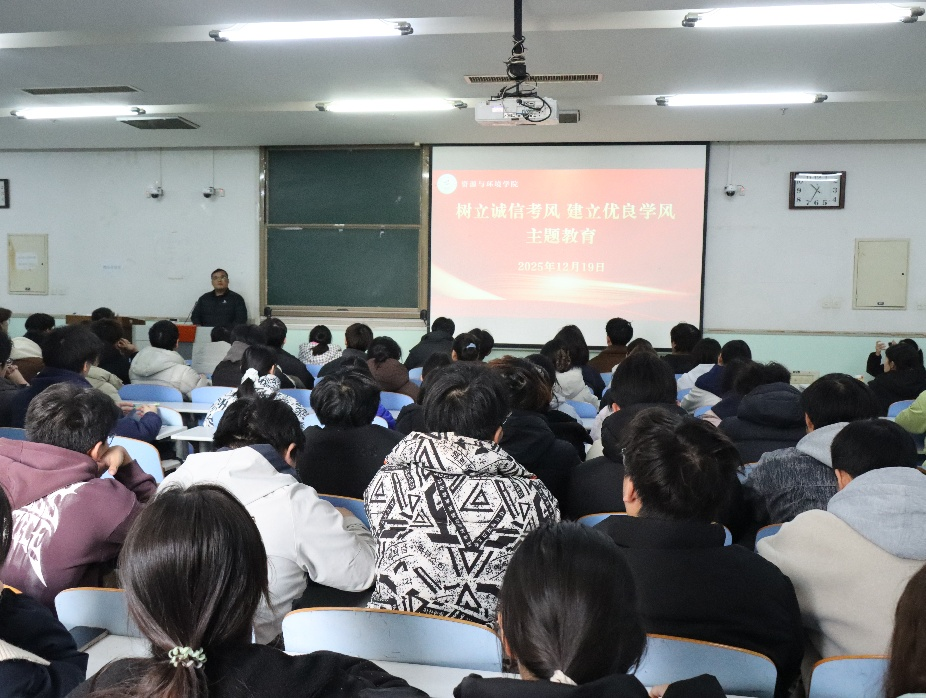 于2025年12月17日-19日组织开展“树立诚信考风,建立优良学风”主题教育活动。 活动面向三个年级的本科生,由学院团委副书记黄春萌,团委老师邓晓铮、张顺涛共同参与。