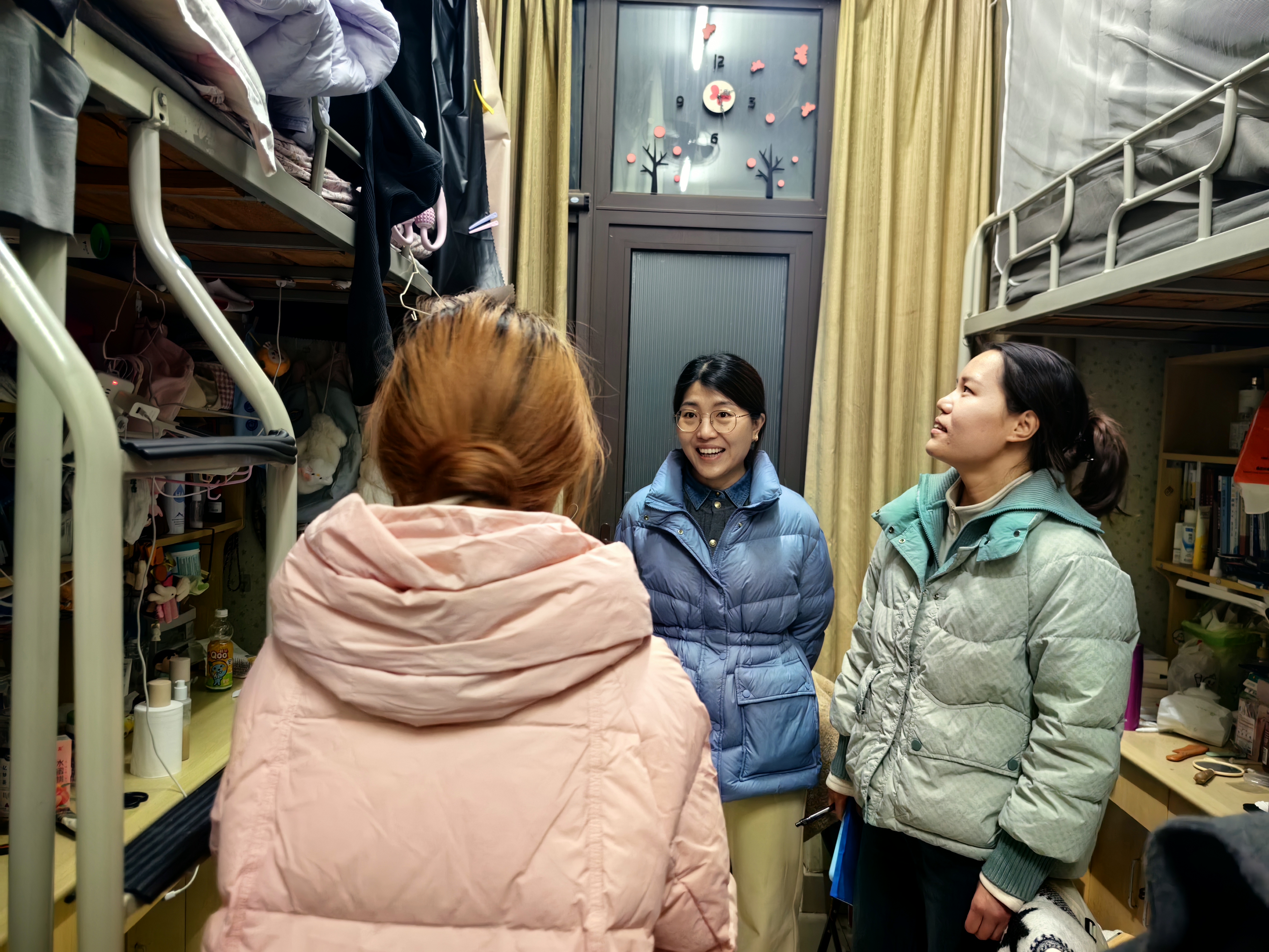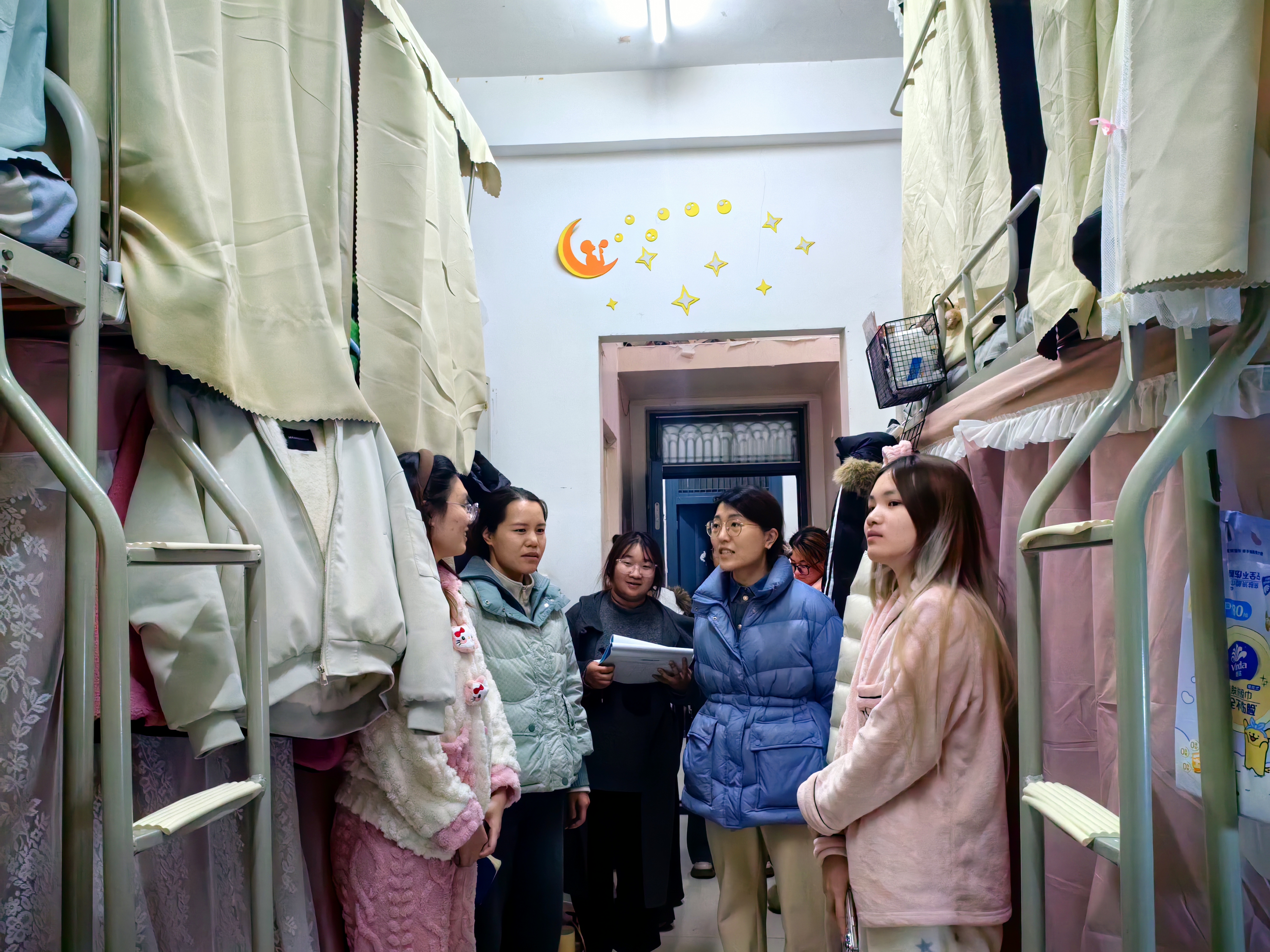 走访过程中,王岚与同学们亲切交流,详细询问复习进度与生活需求,叮嘱大家在期末备考关键期要科学规划复习时间,保持专注学习状态,同时注重劳逸结合,合理调节身心,以最佳状态迎战期末考试。针对即将到来的寒假,她重点提醒同学们提前做好行程安排、妥善管理随身物品,务必牢记离校前断水断电等安全事项。随行教师同步对宿舍内消防设施、用电设备等进行细致检查,及时排查潜在安全隐患。