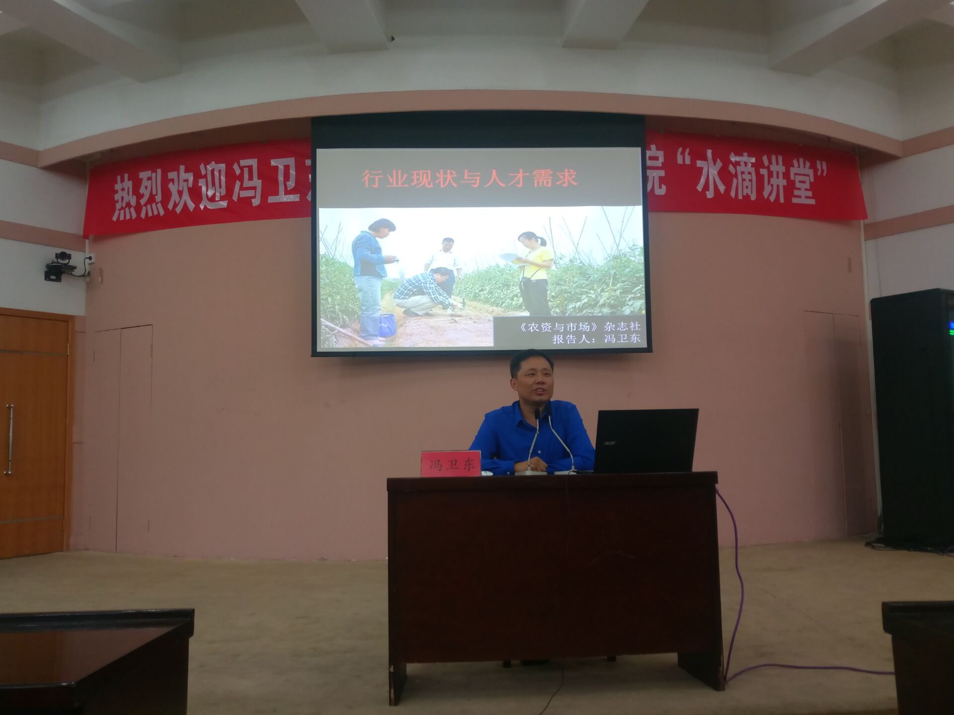 冯老师首先结合自身进入肥料行业二十年的心路历程与大家进行分享交流,他指出当前社会上存在把“肥料”与“农药”妖魔化的现象,引出我国现在农药与肥料的使用现状,继而结合肥料发展历史,逐一阐述了肥料给农业带来的巨大改变,明确了肥料在农业生产发展中的重要意义。随后,冯老师基于自身的从业经验,对同学们提出了几点建议,一要明确目标的重要性,引导同学们大胆设想,勇于追梦;二要聚焦自己的核心竞争力,发挥自己的优势,为未来做好规划。