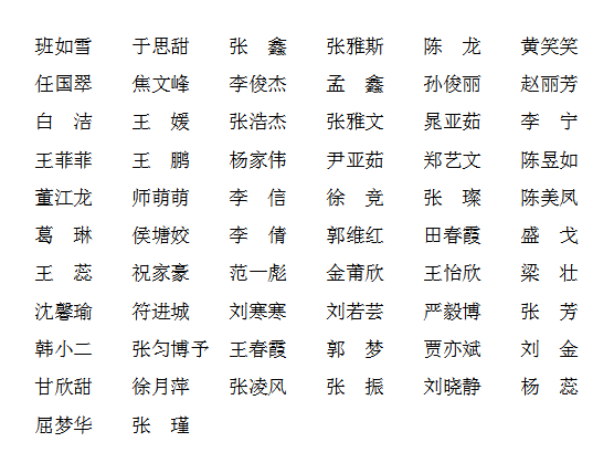 学生工作领导小组经研究决定班如雪、于思甜等62名同学被评为院优秀毕业生。现将名单公示如下: