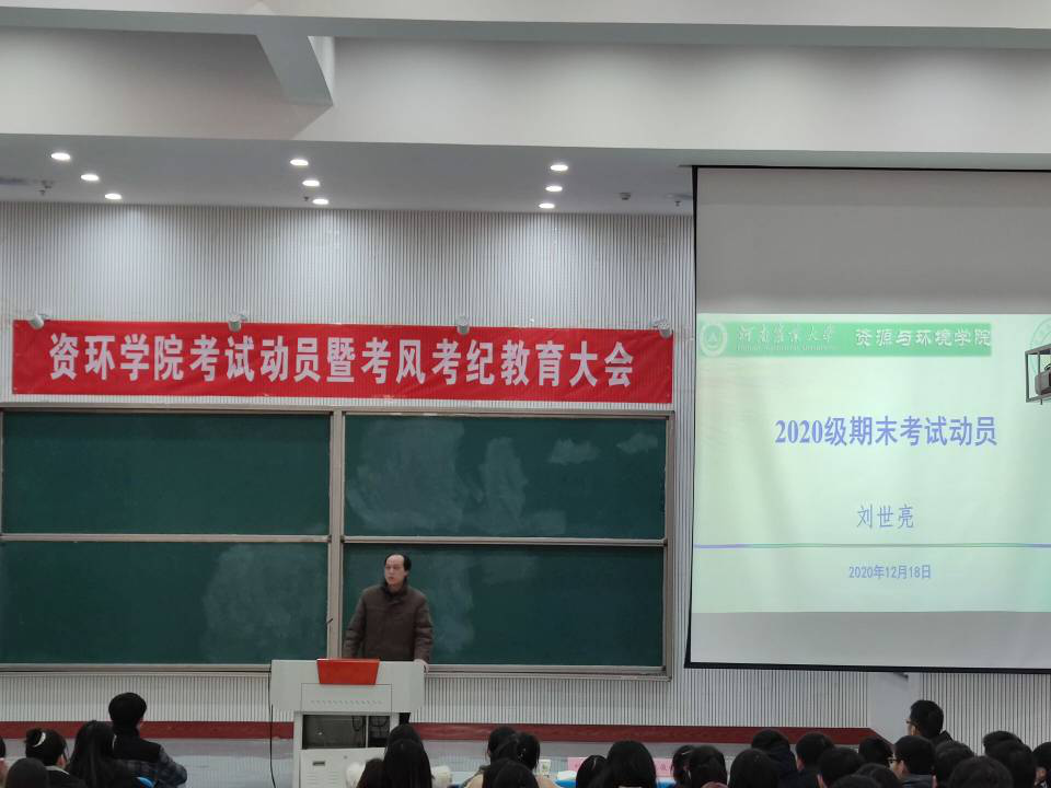 于龙子湖校区繁塔楼大教室2举行考试动员暨考风考纪教育大会。此次会议由2020级辅导员胡明阳主持,由刘世亮副院长、冯新伟老师和王俊倩老师主讲,2020级全体学生参加了此次会议。