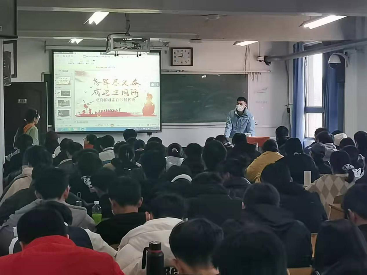 会上,退役在读学生王龙飞首先分享了自己两年军旅生活的收获和感悟,并耐心回答了在场同学提出的问题。随后,胡亚瑾向同学们再次传达了大学生应征入伍的重要意义,并鼓励同学们从军建功,矢志报国。最后,胡明阳就同学们关心的大学生应征入伍优惠政策、退伍复学相关保障、应征入伍工作流程等问题进行了详细讲解,在场同学反响热烈,纷纷表示收获颇丰。