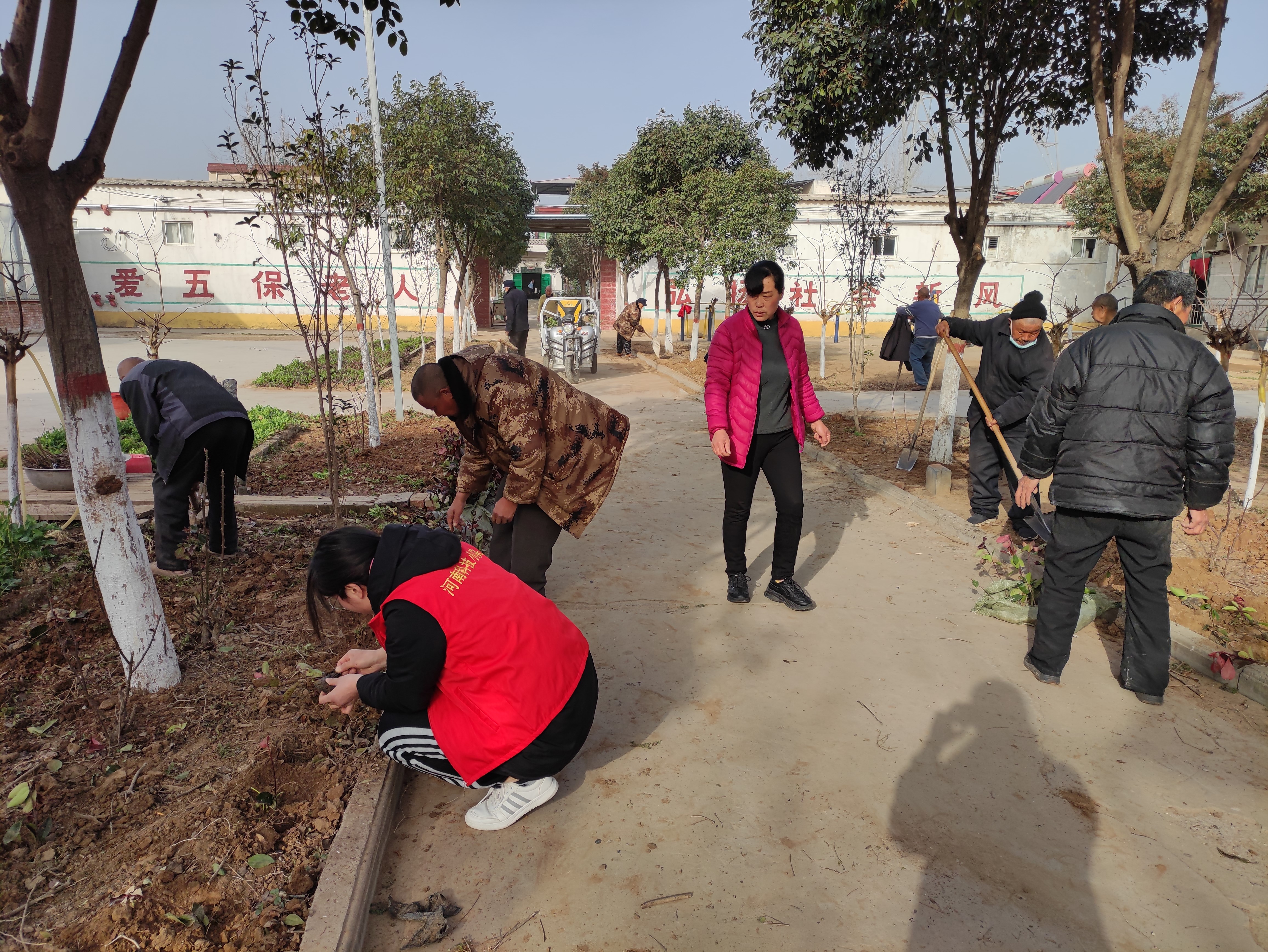 3月5日,禹州科技小院学生党员田培雨、胡雪铃前往敬老院同步开展志愿服务活动。敬老院院长宋国灿对同学们的到来表示热烈欢迎,在带领同学们了解敬老院各项设施后,同学们来到会议室与居住于此的老人们热情聊天,随后组织老人们一起来到花坛,你扶苗,我培土,你浇水,我除草,与老人们一起种下一棵棵的石楠树苗。活动期间,同学们还结合自身所学,向老人们讲解科技小院团队的日常活动,大家对科技小院师生党员扎根基层、服务三农的工作成效纷纷竖起大拇指。