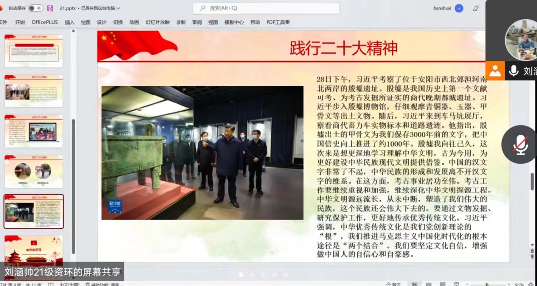 期间,各团支部结合实际情况以多种形式开展本次活动。通过重温党的二十开幕会盛况,再次认真聆听党的二十大报告,深入了解党和国家事业取得的历史性成就、历史性变革,深刻认识党的二十大在党和国家发展进程中的重大意义。通过举办党的二十大精神宣讲会、学习交流会等,进一步引导学生深刻理解党的二十大精神,进而凝聚共识、汇聚力量,筑牢青年学子的信仰之基。还通过录制相关视频,以青年人喜闻乐见的语言和方式进行宣传,进一步引领青年团员把思想和行动统一到党的二十大精神上来,增强作为担当民族复兴大任的时代新人的决心。